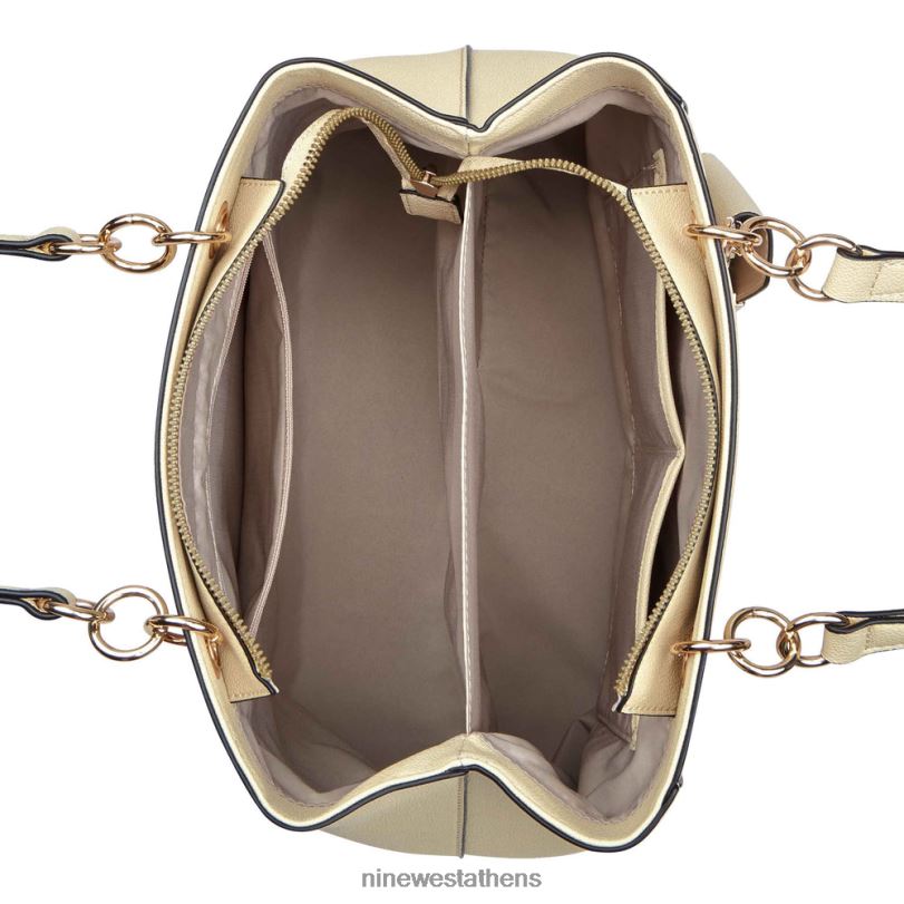εννέα west designer basil jet set shopper με λεπτομέρειες υλικού και εξωτερικά branding. επάνω φερμουάρ και λουράκια αλυσίδας.