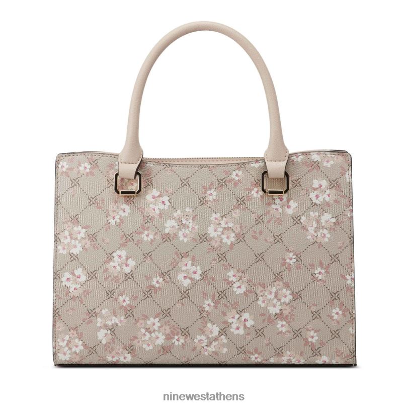 Τσάντα τζετ σετ εννέα δυτικού σχεδιαστή Shayden με λεπτομέρειες υλικού και εξωτερικά branding. σχεδιασμένο με όμορφο λουλουδάτο μοτίβο πάνω από την υπογραφή λογότυπο. σχεδιασμένο με λειτουργία τριπλής θήκης.