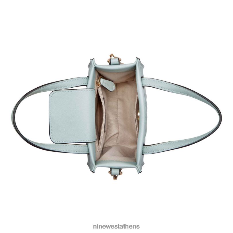 Mini tote emmaline σχεδιαστής nine west με λεπτομέρειες υλικού και εξωτερική επωνυμία. σχεδιασμένο με ανάγλυφο λογότυπο.