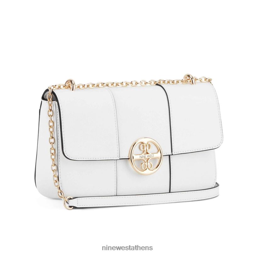 Μετατρέψιμη τσάντα ώμου nine west designer με εστίαση λεπτομέρειας υλικού και κλείσιμο με πτερύγιο. Ο ιμάντας αλυσίδας μετατρέπεται από τσάντα ώμου σε χιαστί χωρίς χέρια.